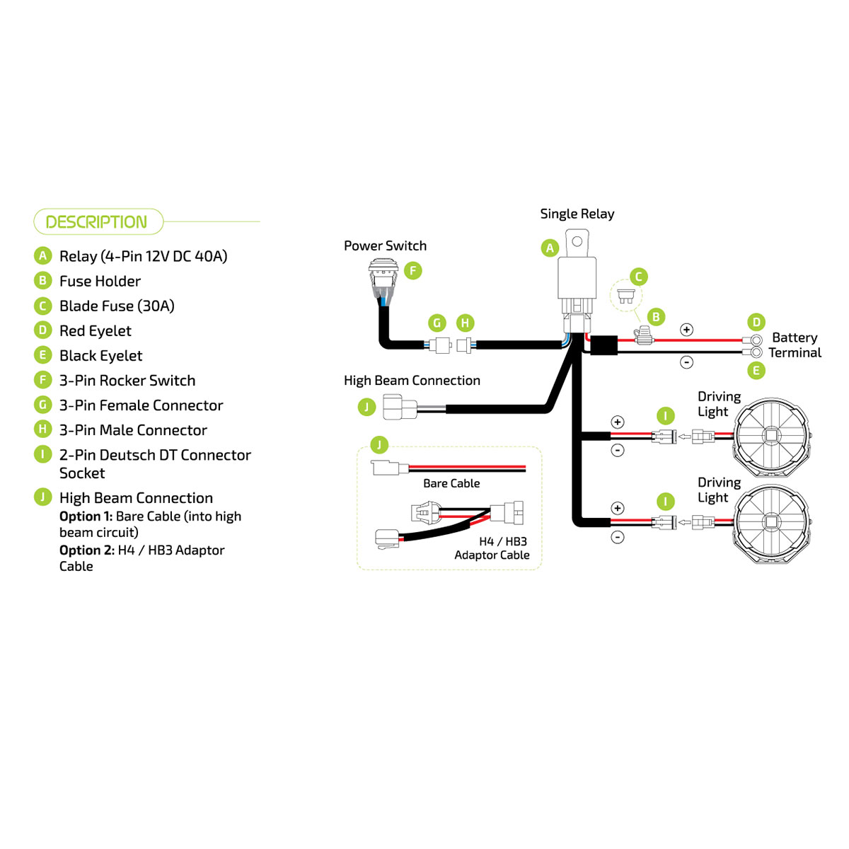 Kit Contents: 1 x Wiring harness kit for two driving lights