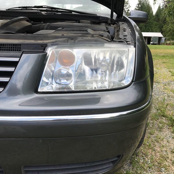 So, the question is: Does the headlight restoration kit work, or did we just waste our money? We decided to try out the Philip’s Headlight Restoration kit on the faded yellow headlights of our 2005 Jetta TDI. We wanted to see if we could get rid of the thick haze on the headlights before installing a set of brand new LED bulbs. First impression: We were really impressed how easy it was. The Philips Headlight Restoration Kit took all of the haze and yellowing away, restoring the headlights to like-new condition and finish! The kit is super easy to use and comes with everything you need: rubber gloves, towelletes, three grades of sandpaper, cleaning solution, polishing and clear-coat protectant solutions, and instructions. It took less than 30 minutes to do both headlights, and there’s enough of each solution left to do our headlights one or two more times! Check out the before and after pictures.